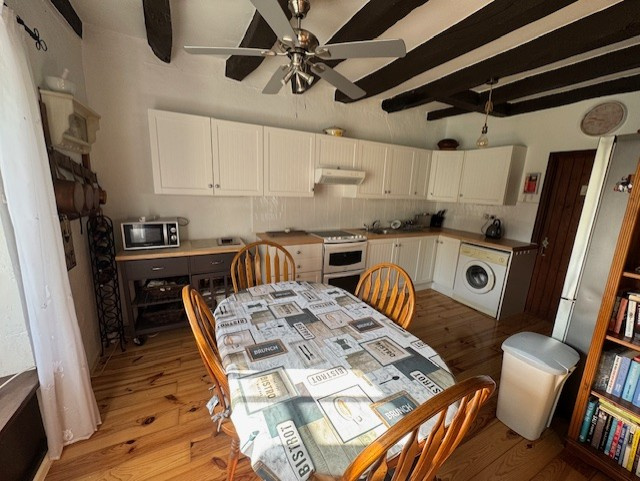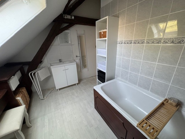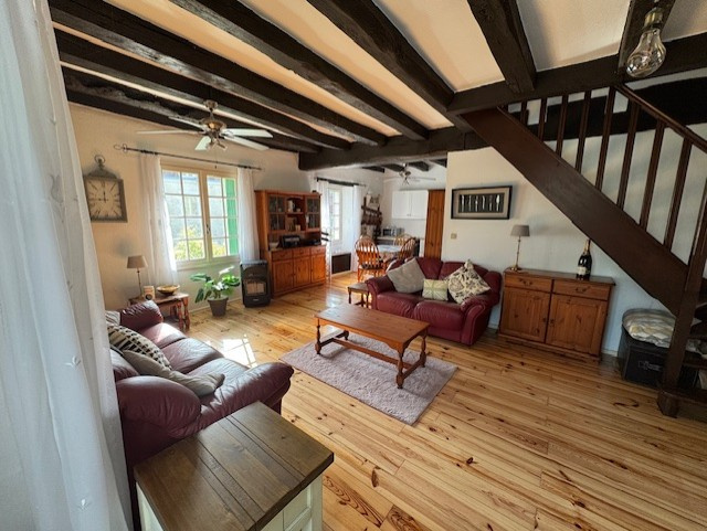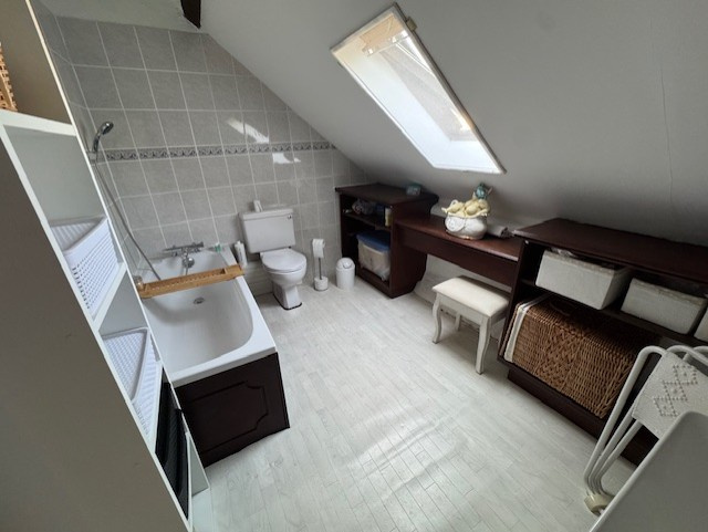 Laissez-vous envoûter par cette maison d'environ 71 m², nichée dans un écrin de verdure, et bâtie avec amour sur une cave généreuse de 40 m². Dès l'entrée, un lumineux vestibule baigné de lumière grâce à une magnifique verrière vous invite à découvrir un intérieur chaleureux et convivial. Le séjour, spacieux et accueillant, invite à la détente et aux moments de partage, tandis que la cuisine, véritable cœur de la maison, a été conçue avec soin, parfaitement aménagée et équipée pour éveiller le chef qui sommeille en vous. Une salle d'eau moderne, avec WC, complète harmonieusement cet espace de vie. À l'étage, deux charmantes chambres mansardées offrent un cocon intime, baigné de lumière, idéal pour se reposer ou accueillir vos proches. Une salle de bains élégante avec WC vient parfaire cet espace dédié à votre confort. À l’extérieur, un magnifique jardin, bordé par un superbe mur en pierre, vous garantit une tranquillité absolue et une intimité totale. Imaginez-y flâner, jardiner ou simplement profiter du soleil en toute sérénité. Pour vos véhicules, un grand hangar de 65 m², pouvant accueillir deux voitures ou un camping-car, vous apportera toute la praticité dont vous avez besoin. Cette maison est une véritable perle rare, prête à devenir votre havre de paix, où chaque détail raconte une histoire de charme et de douceur. N’attendez plus pour venir la découvrir !